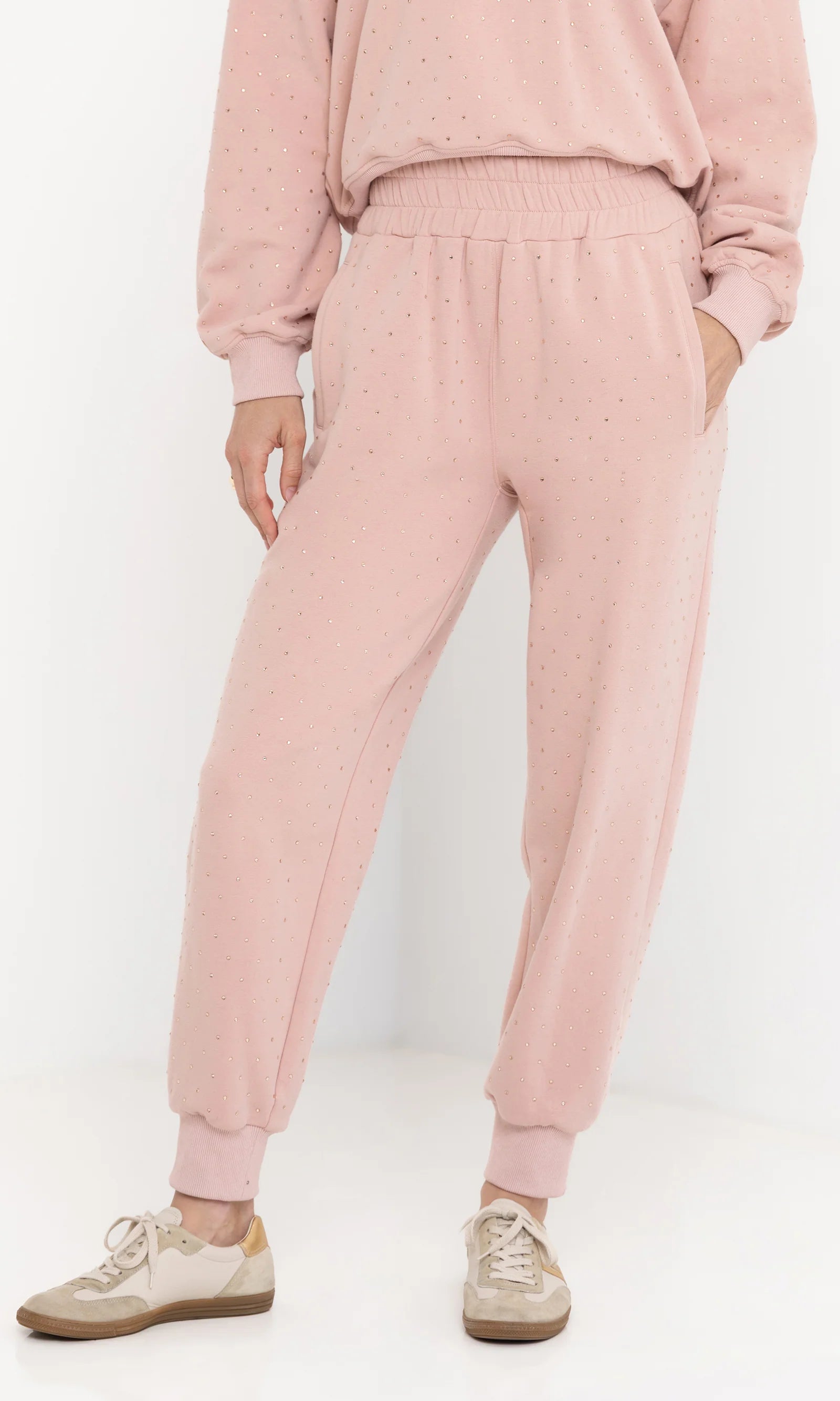 Crystal accents give these classic joggers a modern edge, making them ideal for days when you want both comfort and style. Wear them with the matching hoodie for a sleek, contemporary look.